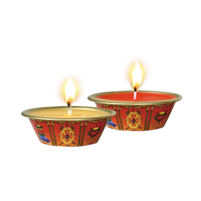 产品名称: 八吉祥醍醐灯(金属杯2cm) 产品编号:MD009 燃烧时间:6小时 规格:R=5.8cm H=2.1cm 包装数:吸塑216盏/件