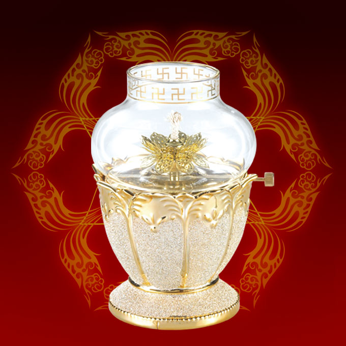 产品名称:金色莲花调控油灯3号(小金砂) 产品编号:MD-0546 产品规格:R=5cm H=14cm 底座R=8cm 包装数:12套/件