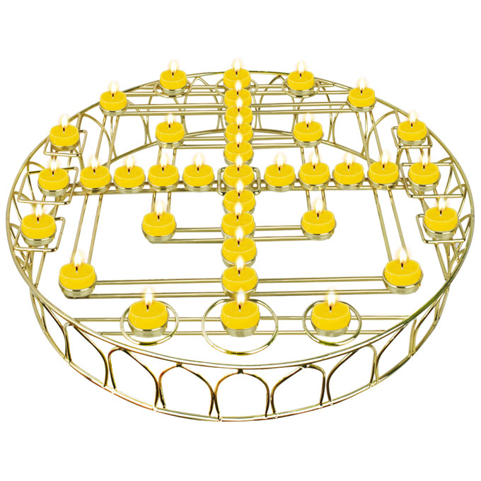 产品名称:三十七堆曼荼供盘 产品编号:MD-DZ17# 产品规格:R=60cm,H=8.5cm 包装数:彩盒4个/件 净重/个:2.9kg